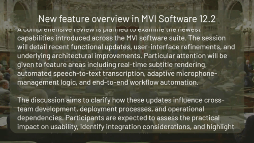 Release 12.2 breidt het innovatieve bereik ook uit naar het bredere MVI AudioVisual-ecosysteem. We breiden de internationale DMS-ondersteuning uit met nieuwe adapters voor Harbour Software (Australië) en ALLRIS (Duitsland). Deze integraties synchroniseren vergadergegevens met de MVI-suite en sturen stemresultaten terug naar het DMS. Dit stroomlijnt de voorbereiding en documentatie nog verder.